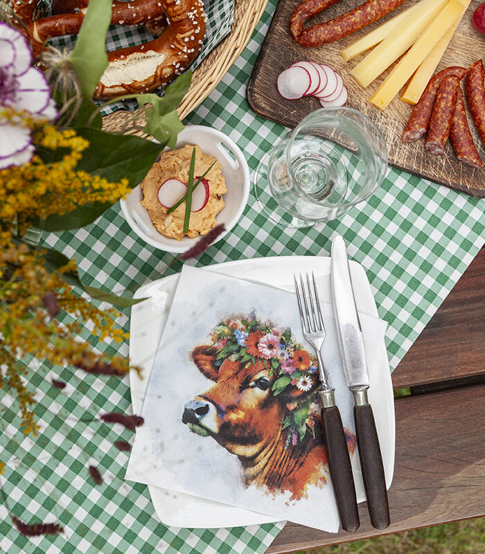 Tischdekoration für zünftige Oktoberfeste gibt es schon lange in unserer Kollektion. Neu ist unser Design „Bavarian Alps“. Es ist filigran gezeichnet und wurde detailgetreu auf unserer neuen Serviettendruckmaschine in der Größe 33 cm x 33 cm umgesetzt.